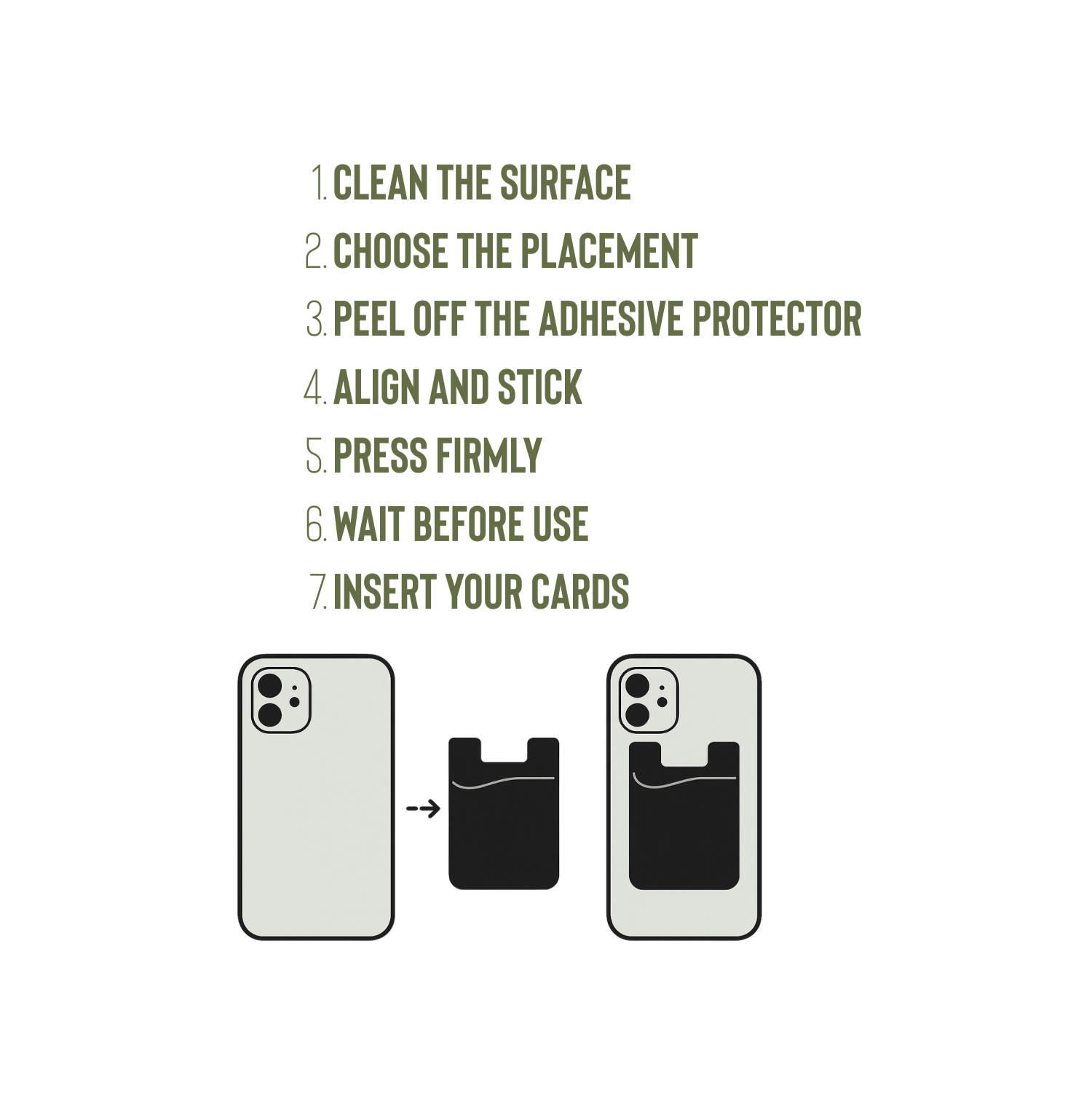 1 (one) Vegan Leather Card Holder Phone Stick on Compatible with most Smart Phones and case, iPhone, Android etc card Holder.