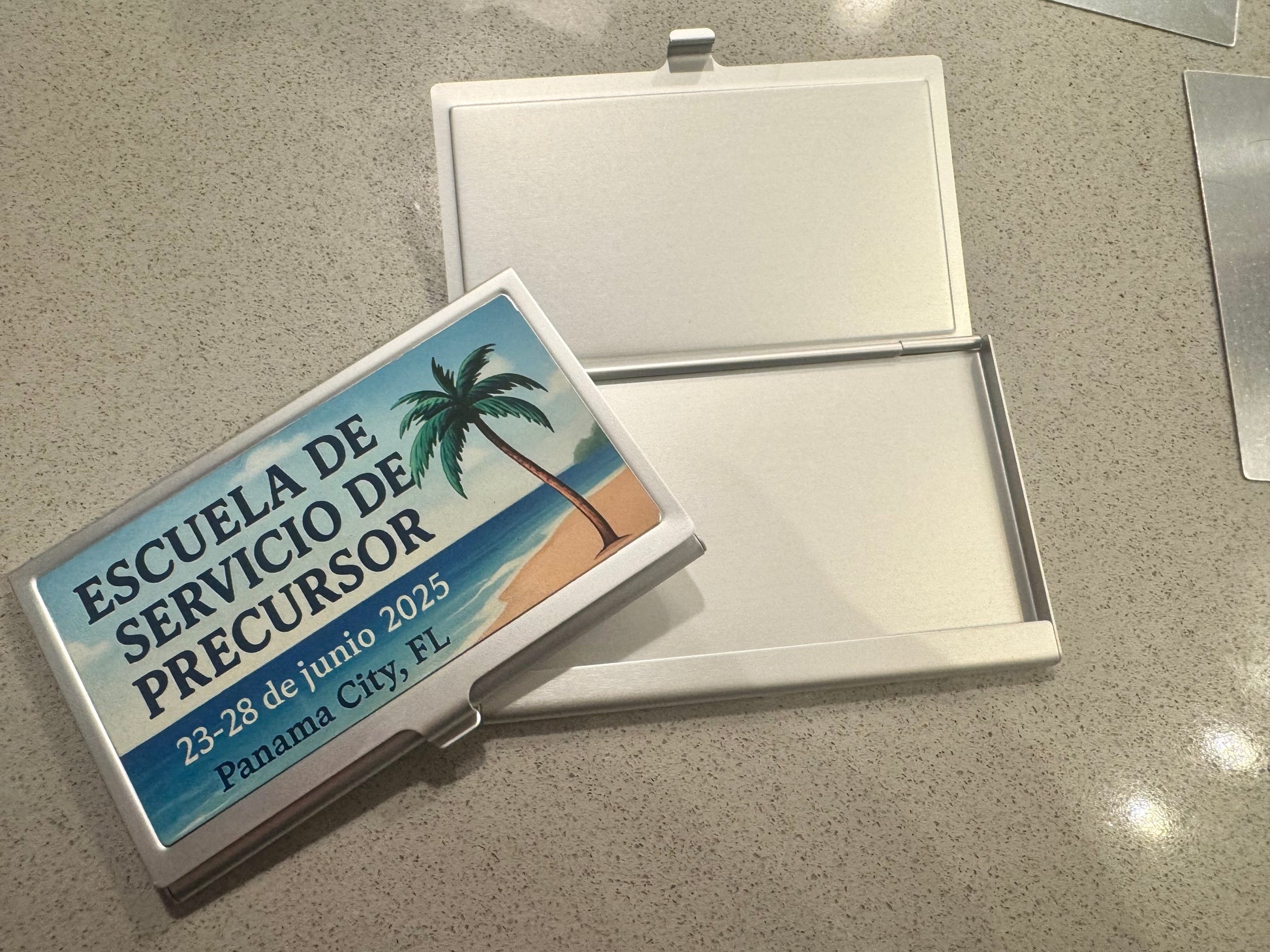 Do you want to avoid dog-earing or bending your contact or business cards? Let's create something great! This is a sample of what we created for PSS gifts